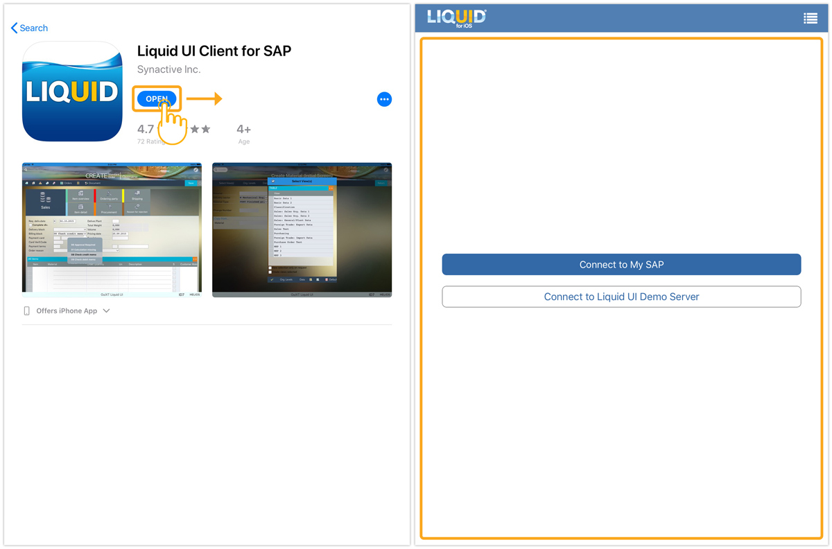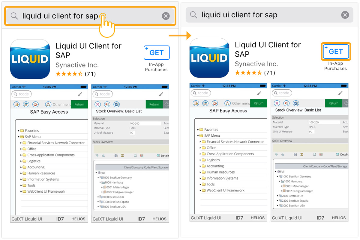 - Go to the app store and search for Liquid UI Client for SAP, then tap on GET to install it on your device.