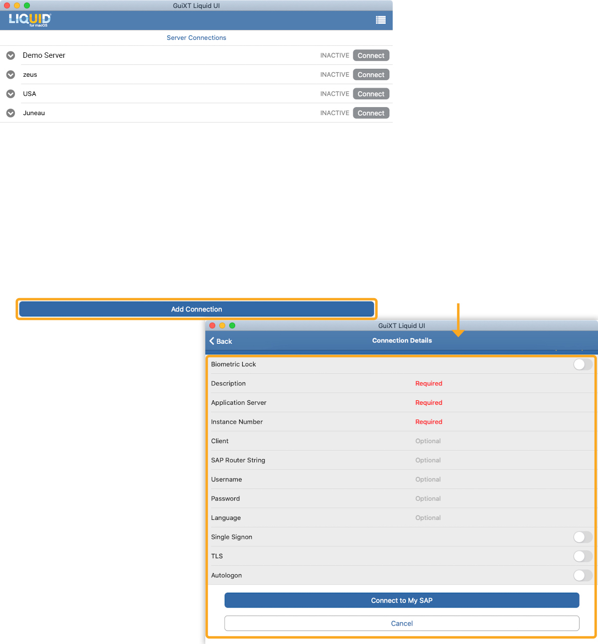 To connect your Liquid UI for macOS to the SAP server, please do the following: