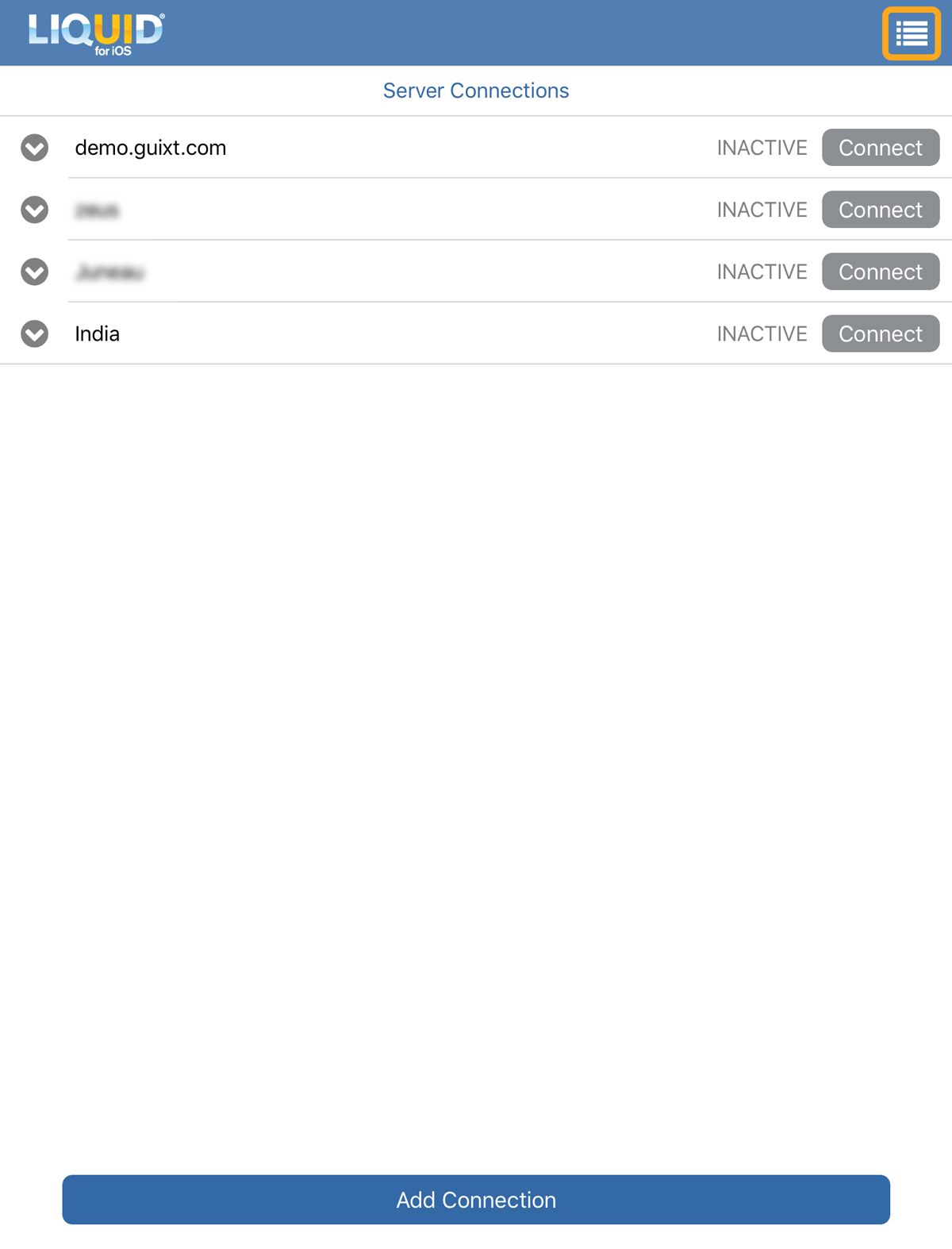 - Open the Liquid UI for iOS app and tap the Navigation Drawer in the upper right-hand corner of the screen.