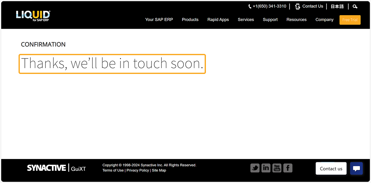 - You will be redirected to a THANK YOU page, confirming the successful submission of the request.