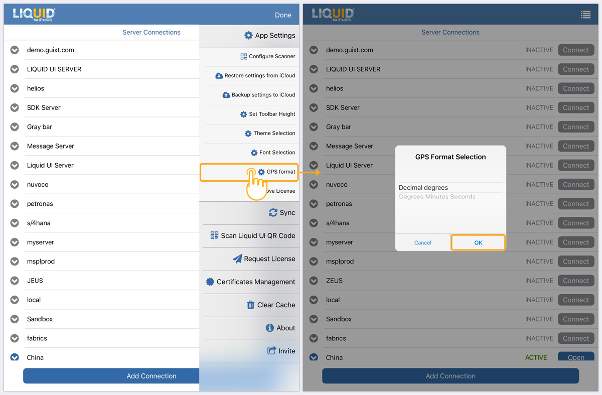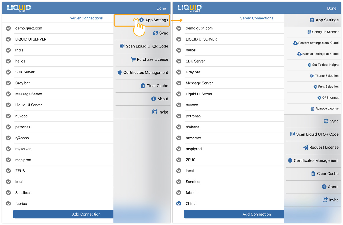 You can adjust your Liquid UI for iOS app settings and customize it per your requirements. The Liquid UI for iOS app features two types of app settings, outlined below.