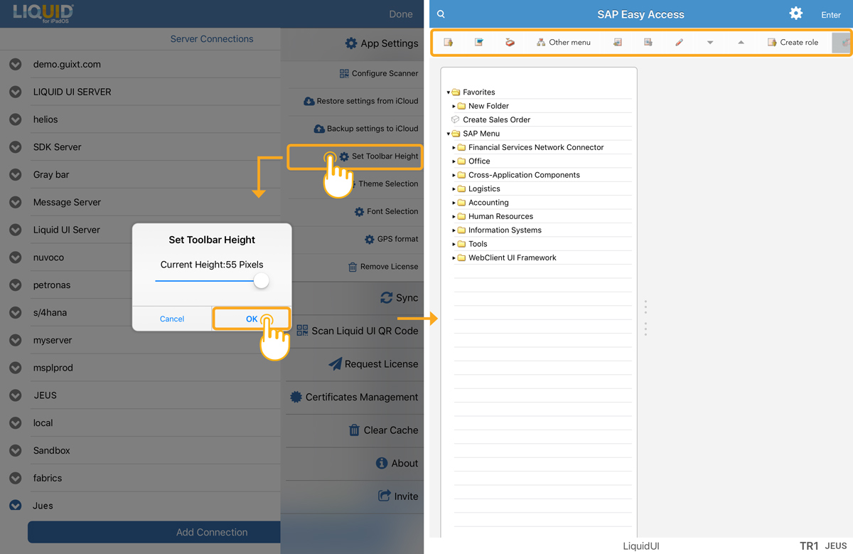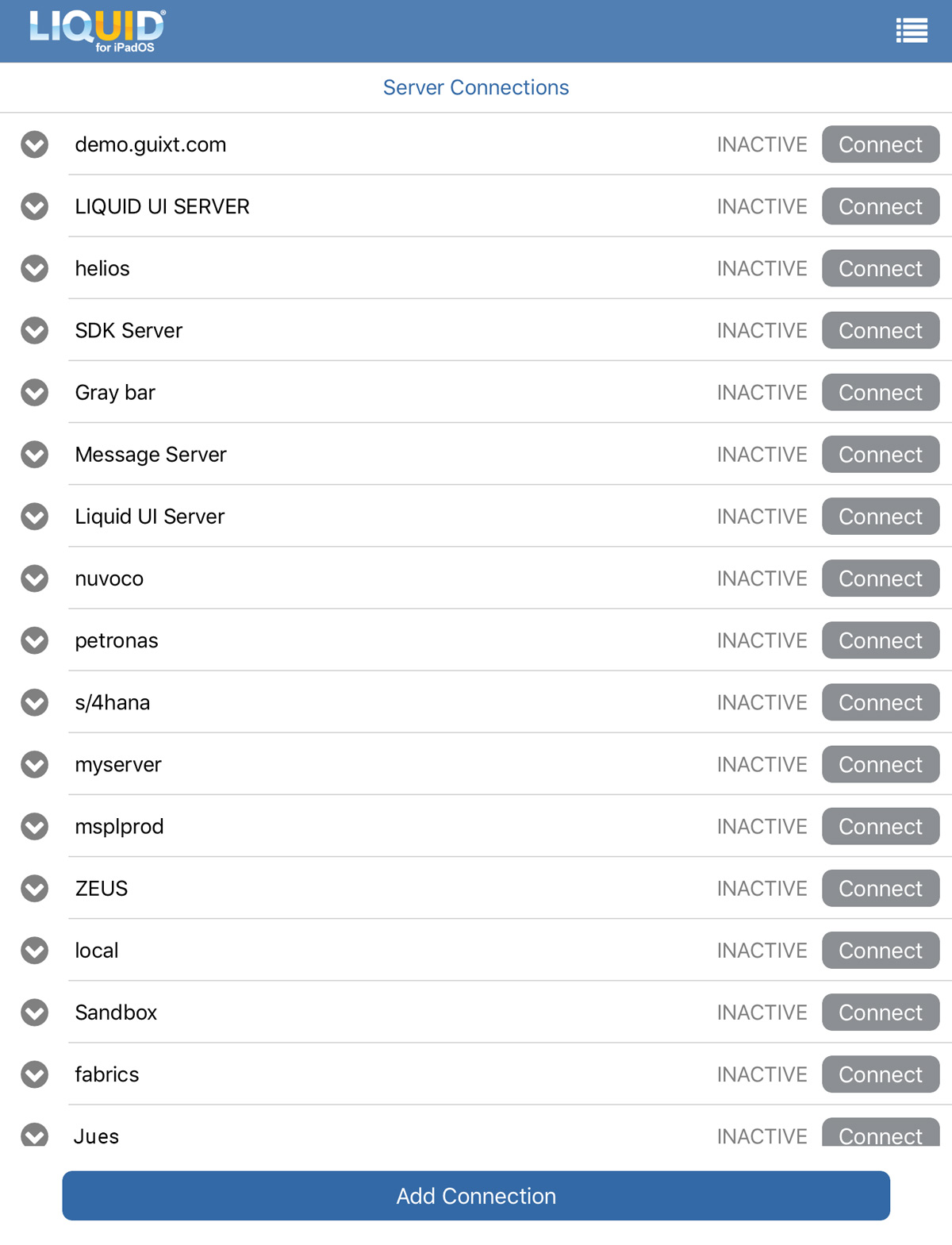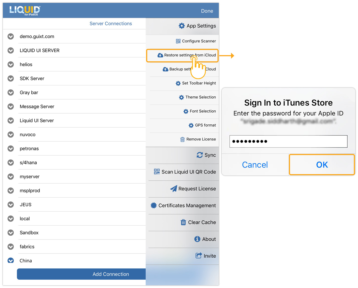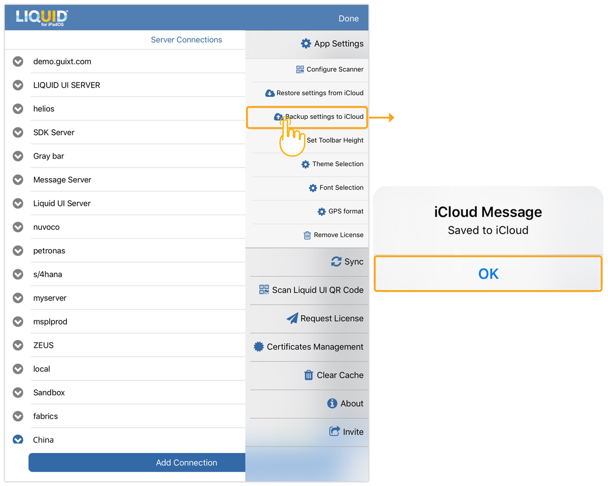 This option offers iCloud backup and restoration of your SAP connections. If you delete the Liquid UI for iOS app accidentally, it prevents you from reconfiguring and reinstalling licenses.