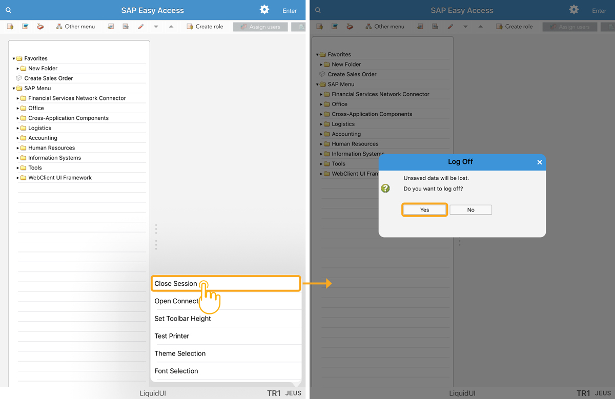 This option lets you close the functionality of the SAP screen. Click on Close Session, and then a popup appears asking for confirmation. Click Yes to continue.