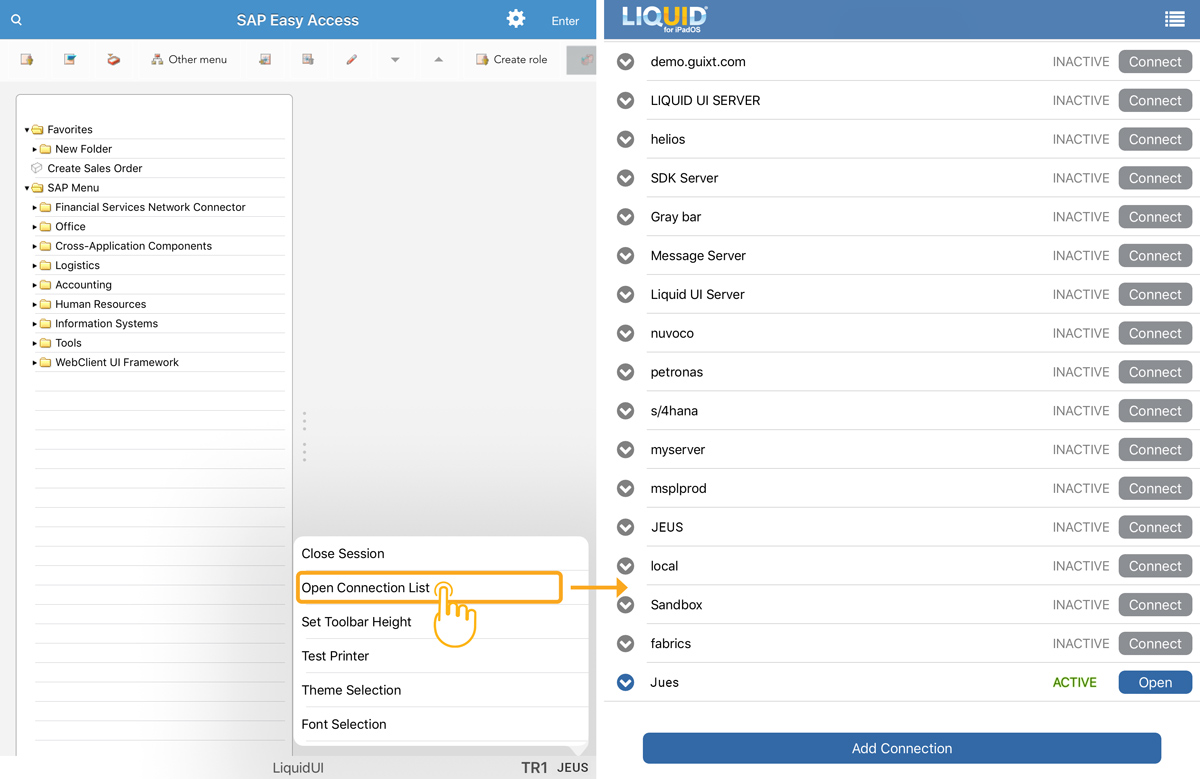 Settings 2: Navigate through the transaction screen→click on the SAP Connection.