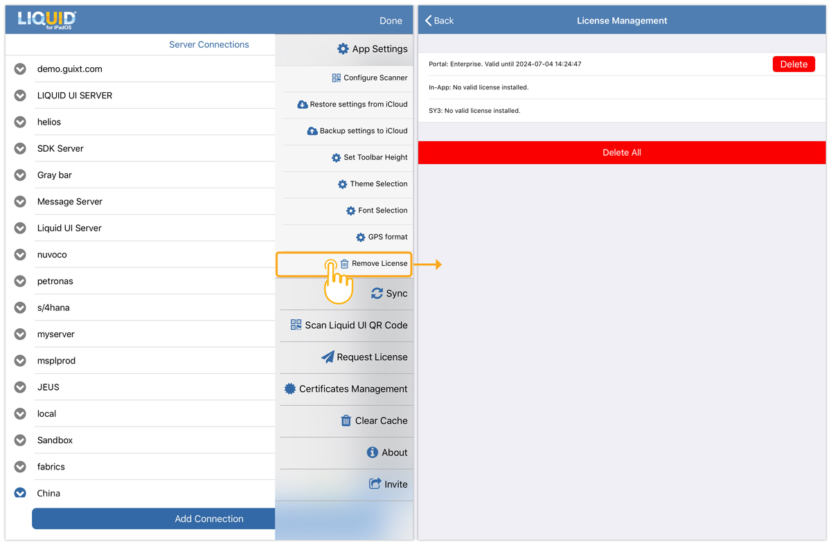 This option lets you remove all your licenses from the Liquid UI iOS device.
