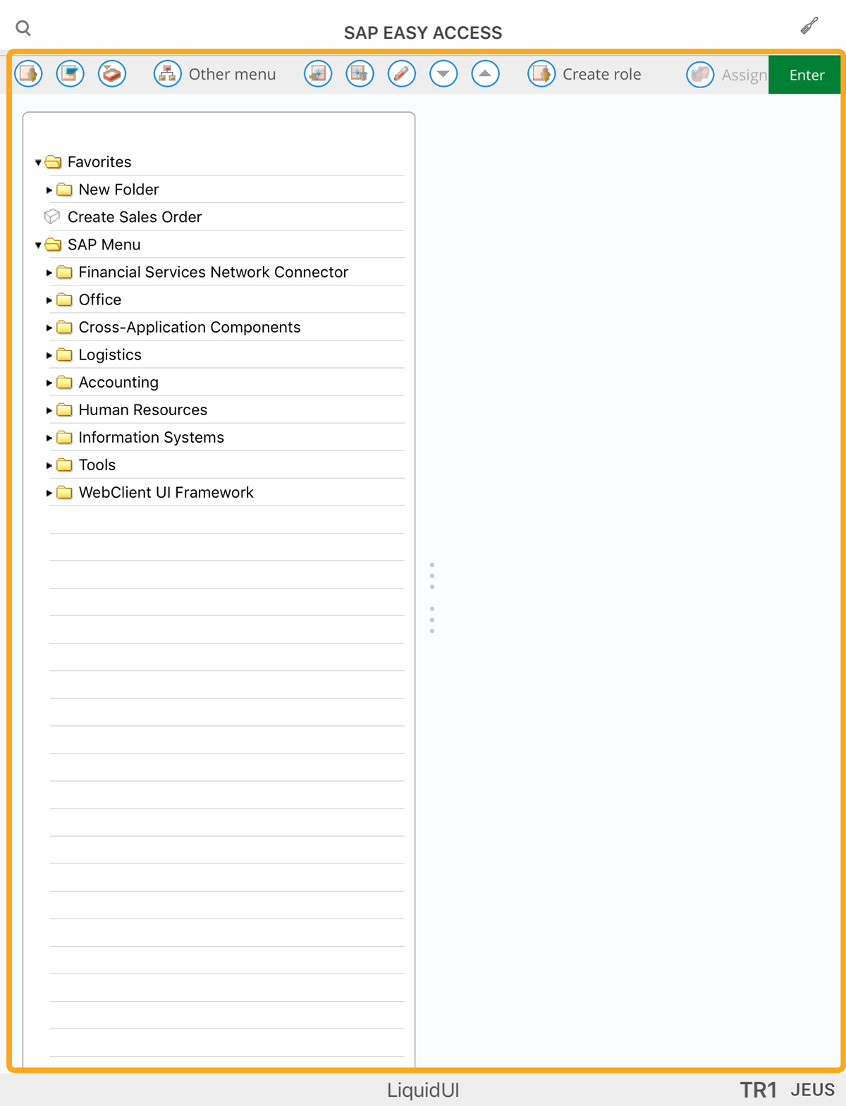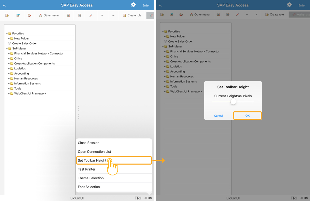 This option allows you to change the height of the toolbar on SAP screens. The toolbar height varies from 35 pixels to 55 pixels. Choose the desired height and click OK. The selected toolbar height will then be displayed on the SAP screen, as shown below.