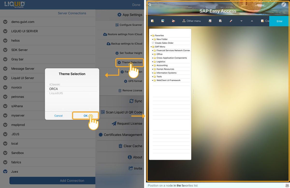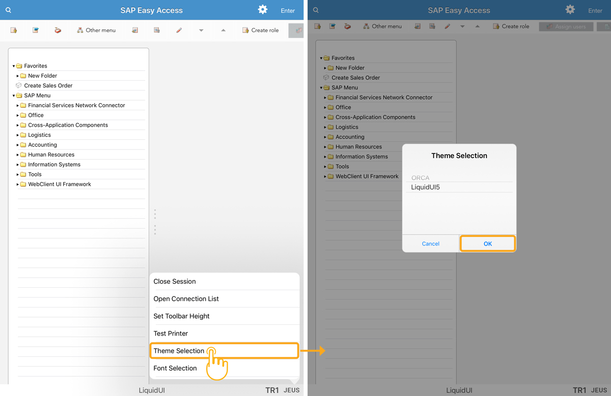This option lets you select the theme from Tile, iClassic, ORCA, and LiquidUI5. By default, the theme selection is set to Tile. Select your desired theme, and click OK.