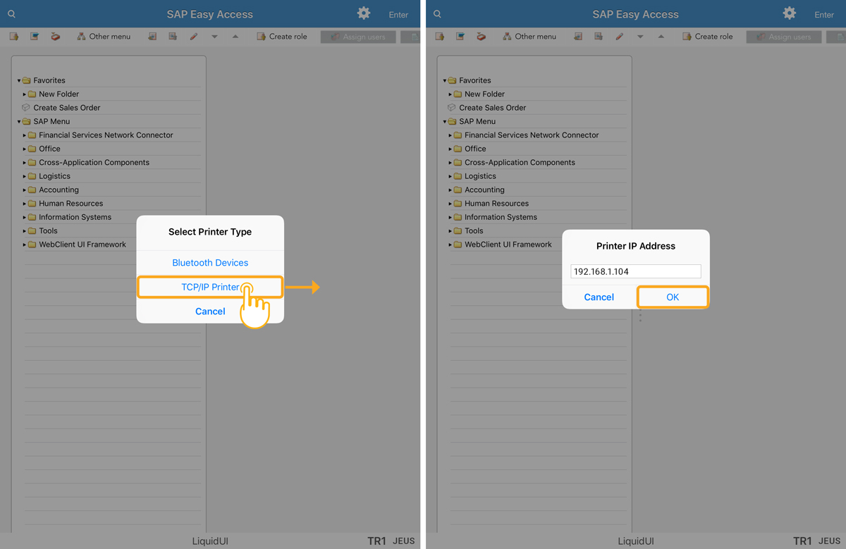 - Select TCP/IP Printer, and then a popup appears to enter the printer's IP address, as shown below. Enter your IP address and click OK.