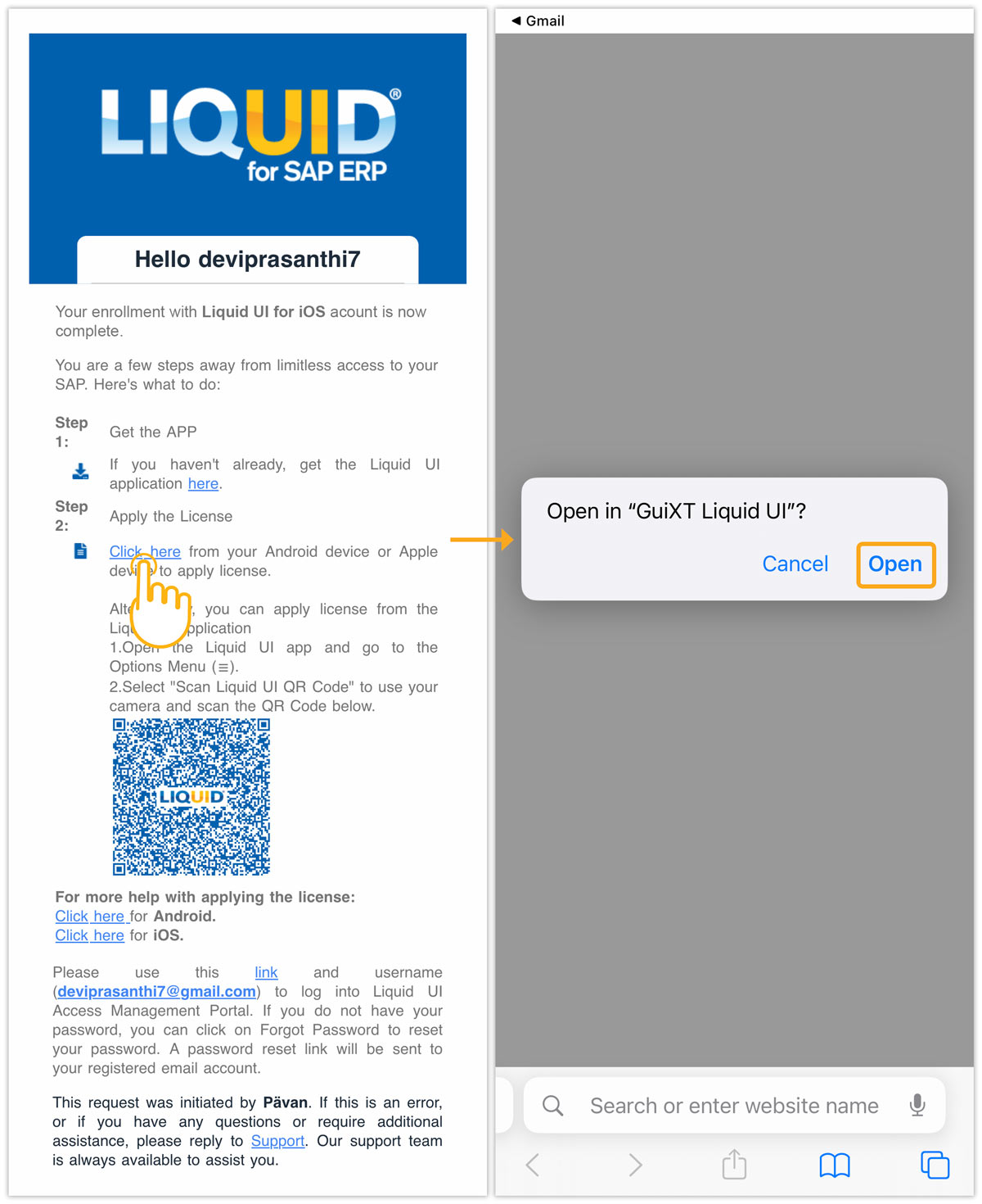 - Click the License Activation Link in the email from your iOS device and open it with the Liquid UI app.