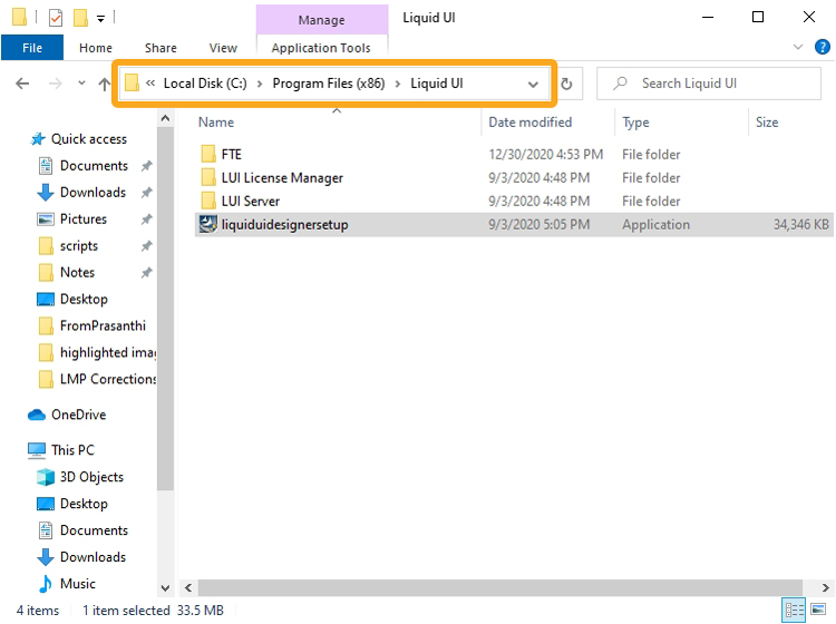 - 32-bit systems --> C:\Program Files (x86)\Liquid UI\LUI Designer (older operating system)