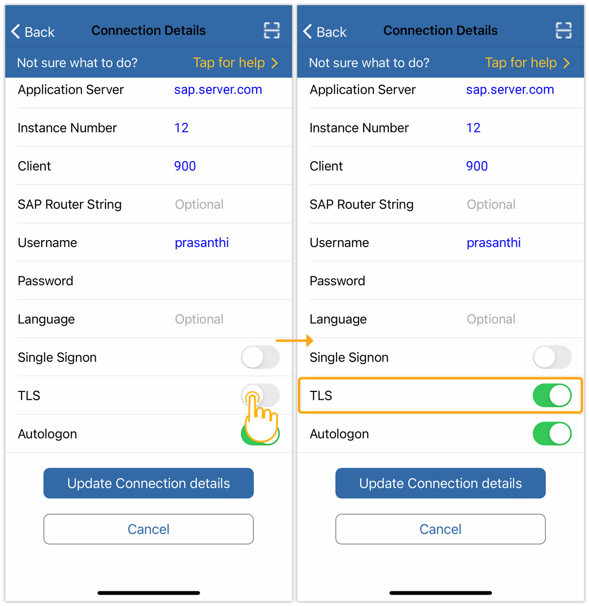 - Launch Liquid UI for iOS app and enter the server details to connect. Then, scroll down to the TLS option and switch it ON, as shown in the image.