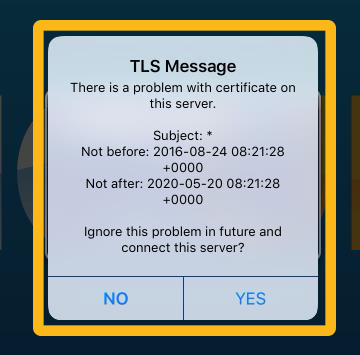 - Click Yes to connect by resolving the certificate validation problem and updating the local certification lists.