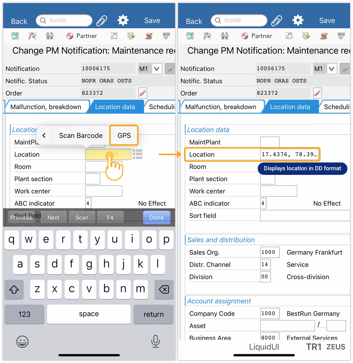 Liquid UI for iOS integrates GPS and enables users to input geographical coordinates into SAP fields with just a long press. Currently, providing three GPS coordinate formats, as explained below: