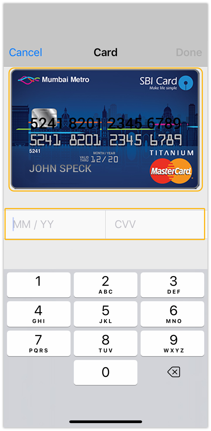 - If you choose manual entry, you need to enter the Card number along with the expiry date and CVV and then tap Done to proceed.