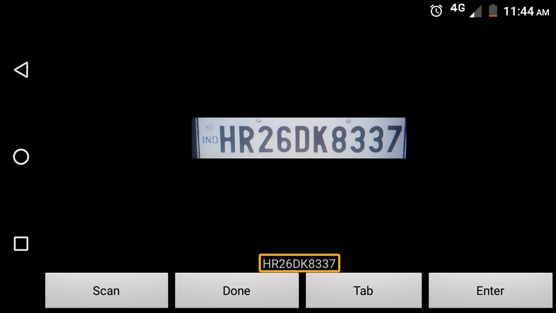 - Click Done to display the scanned vehicle license plate number in the Input Field, as shown below: