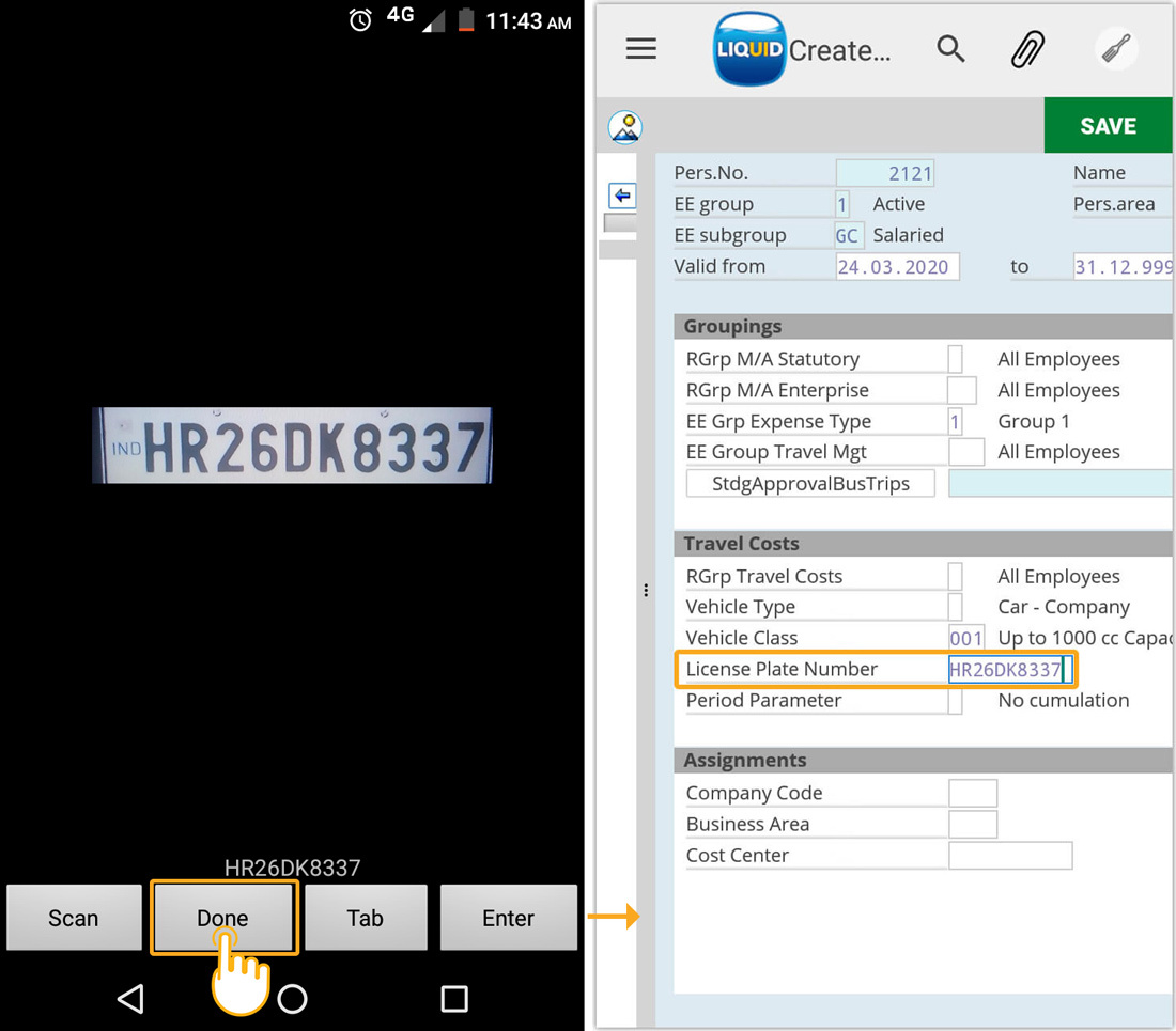 In this article, you will learn how to use the OCR feature in the Liquid UI for Android App. Over here, we will go through how to activate the OCR, scan the vehicle license number on the number plate, and display it on the required Input Field in the PRMD transaction.