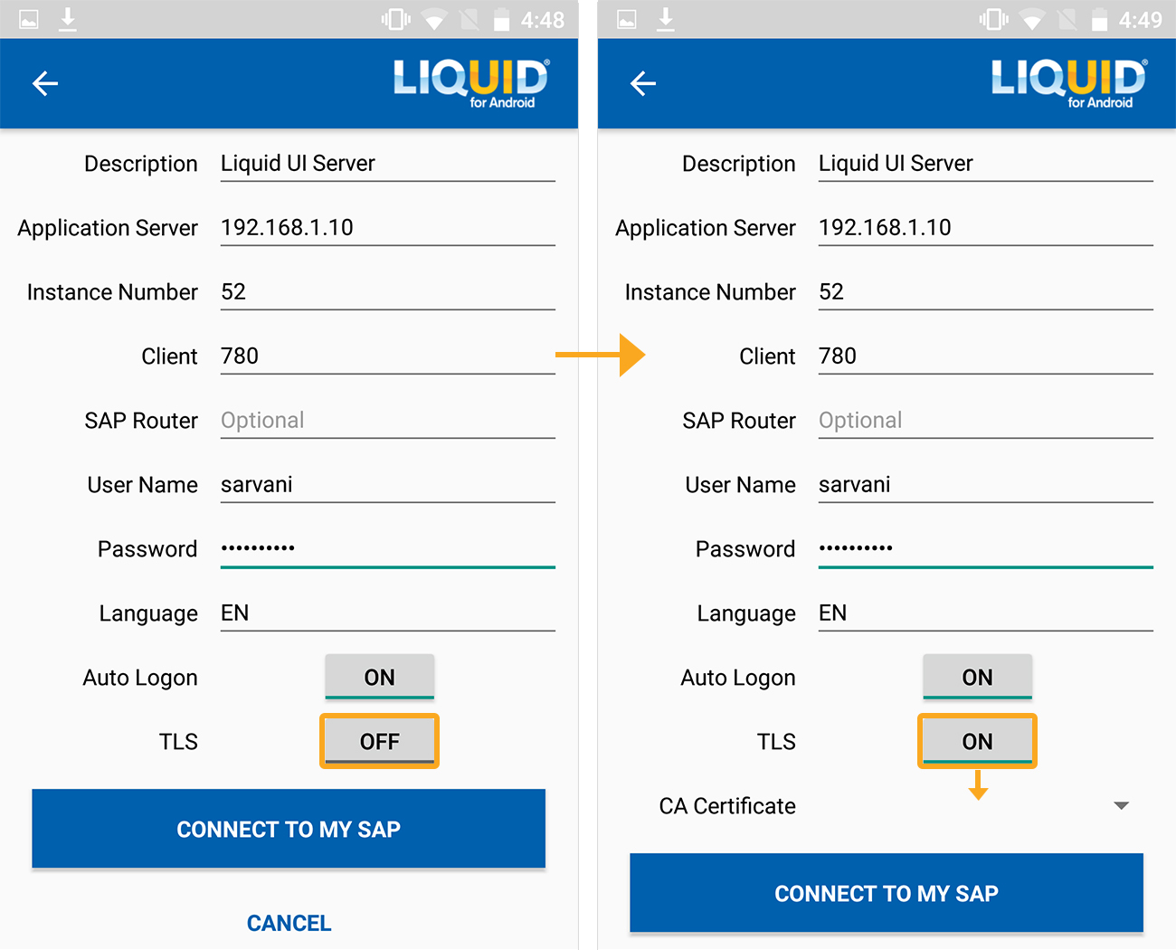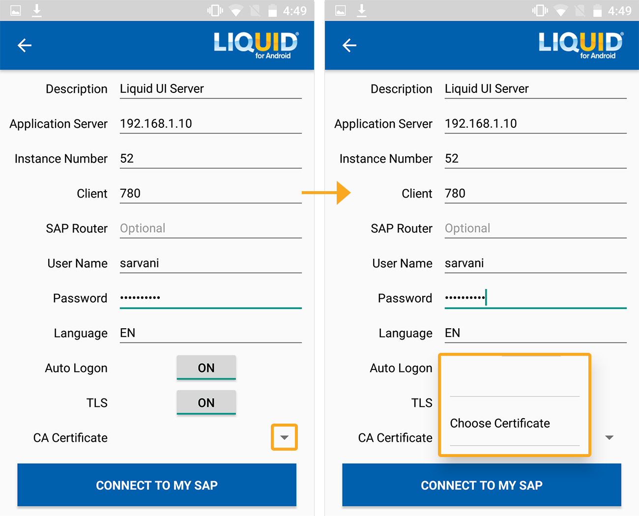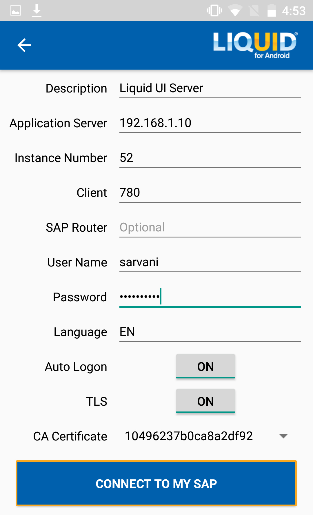 - You will be logged in to SAP with end-to-end security from your Liquid UI for Android App.