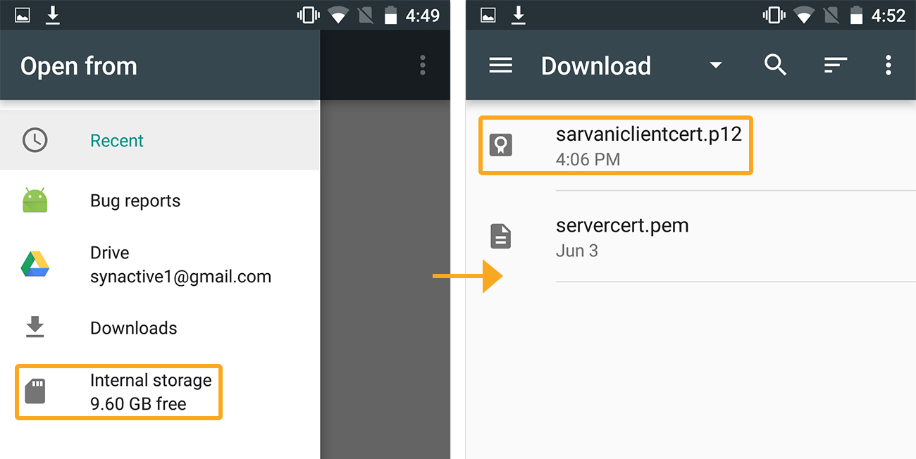 Note: You will need the Client CA certificate password to install the certificate on your Android device.