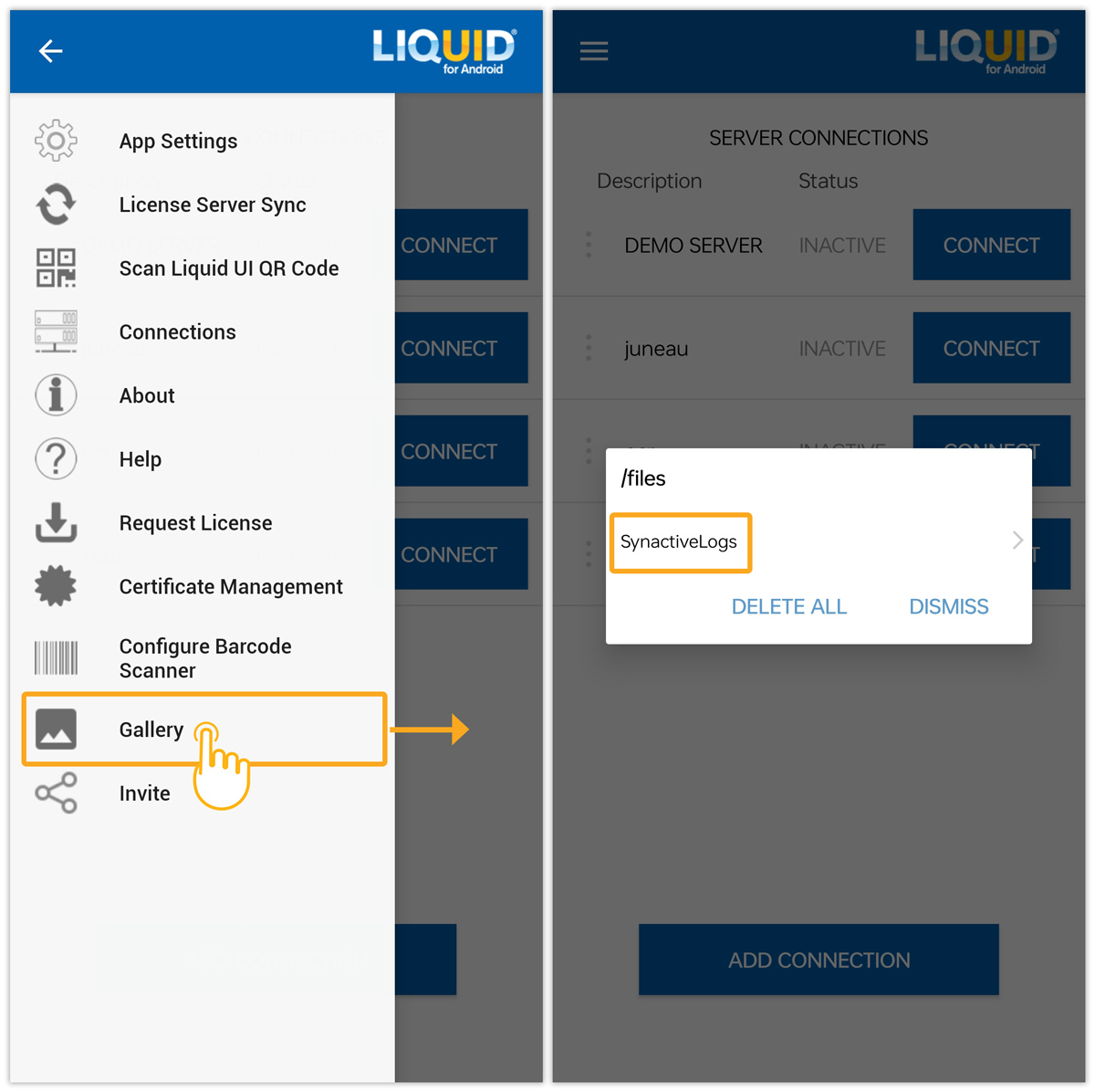 - To view the system logs that have been generated, kindly navigate to the gallery associated with your Liquid UI application through the Main Menu. The logs, named SynactiveLogs, are available here.