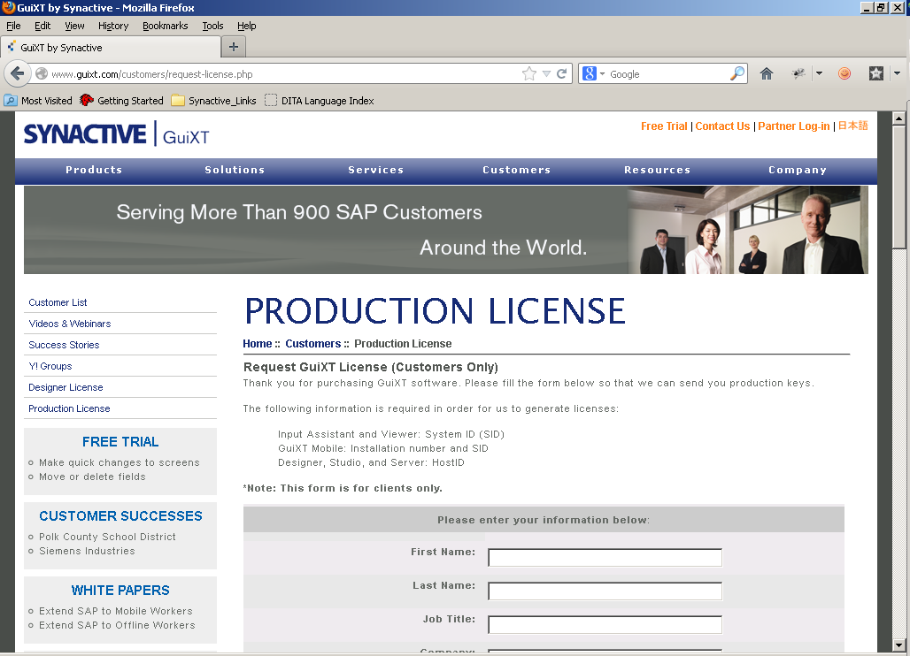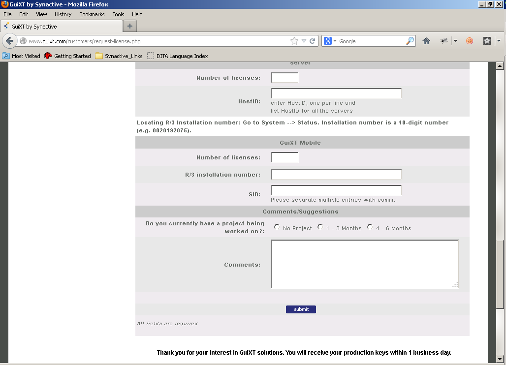 2. Go to the License Request form on the Synactive website at http://www.guixt.com/customers/request-license.php