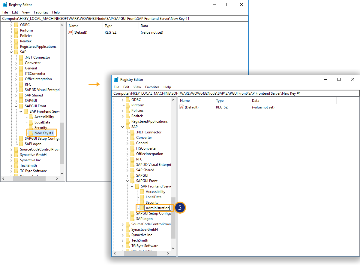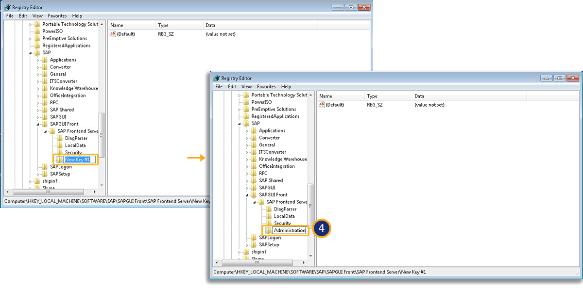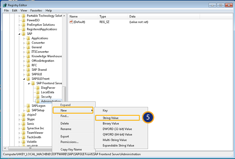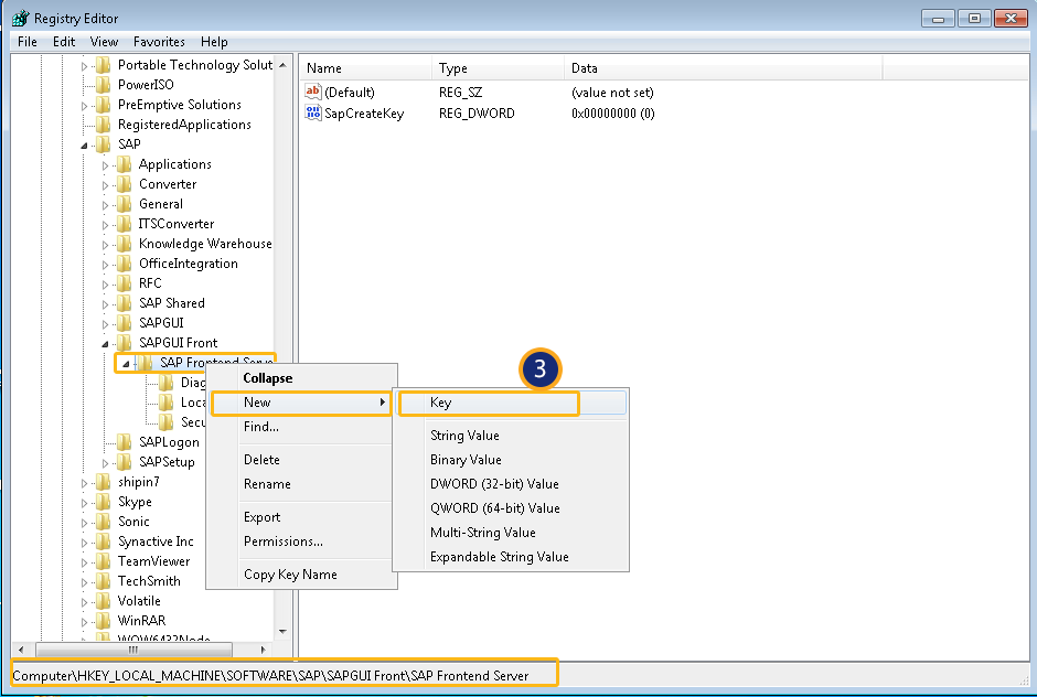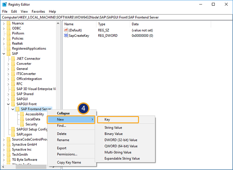- Right Click on SAP Frontend Server, select New and then select Key.
