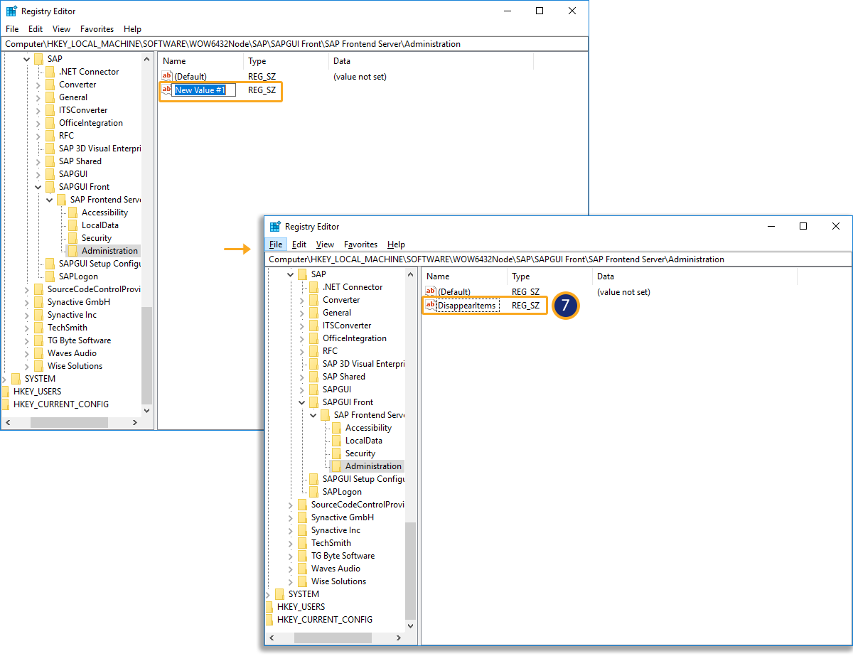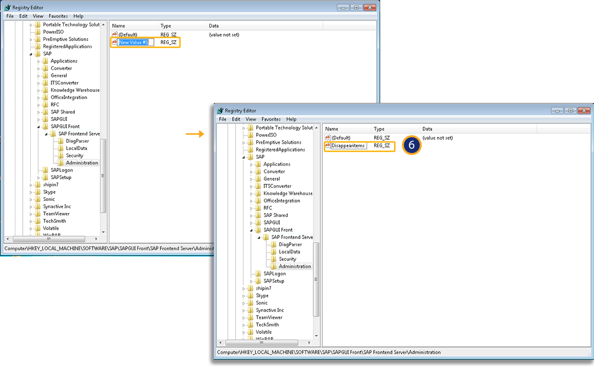 You can Create a New Registry Key and Value in 32 bit Operating system and 64 bit Operating system to disappear SAP menu item to avoid performing changes to the required menu items of the SAPGUI. You need to follow differrent path to create registry key and value in different types of Operating Systems.