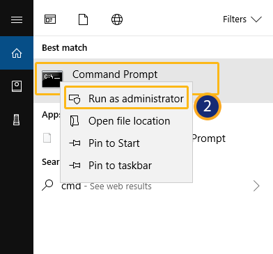 - Open Command Prompt and run as an Administrator.