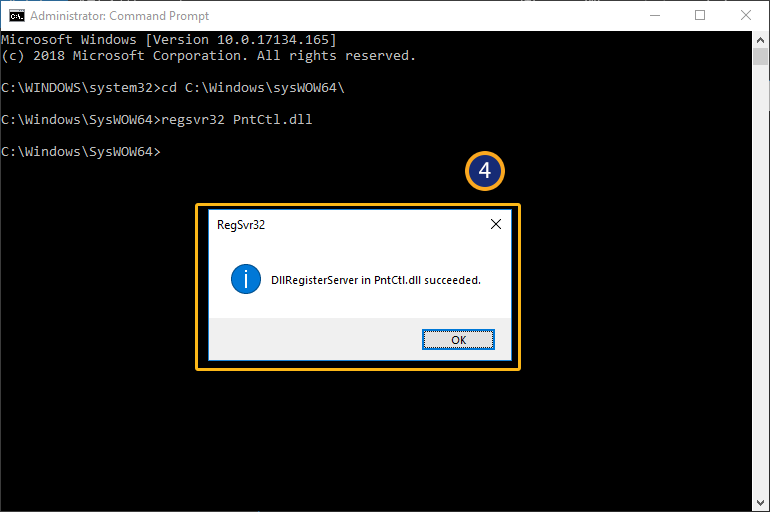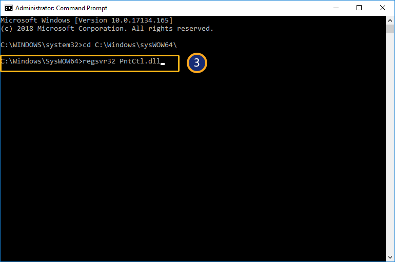 - Change the directory to required path as shown below: cd C:\Windows\sysWOW64\ and hit enter. Enter regsvr32 PntCtl.dll and Click enter as shown below.