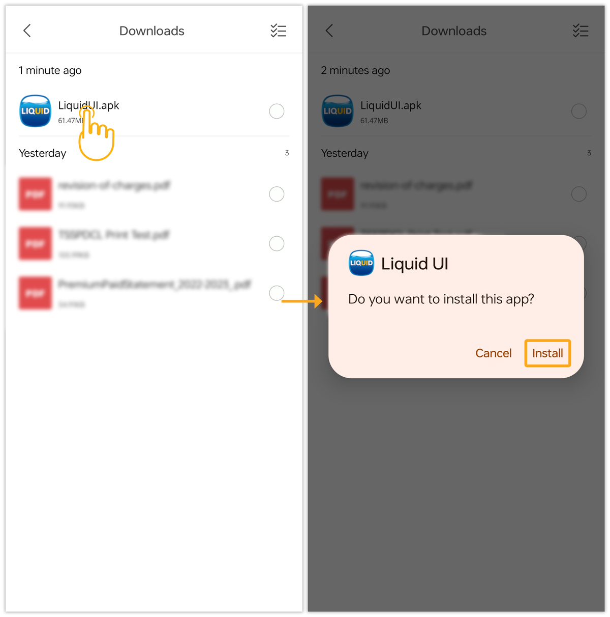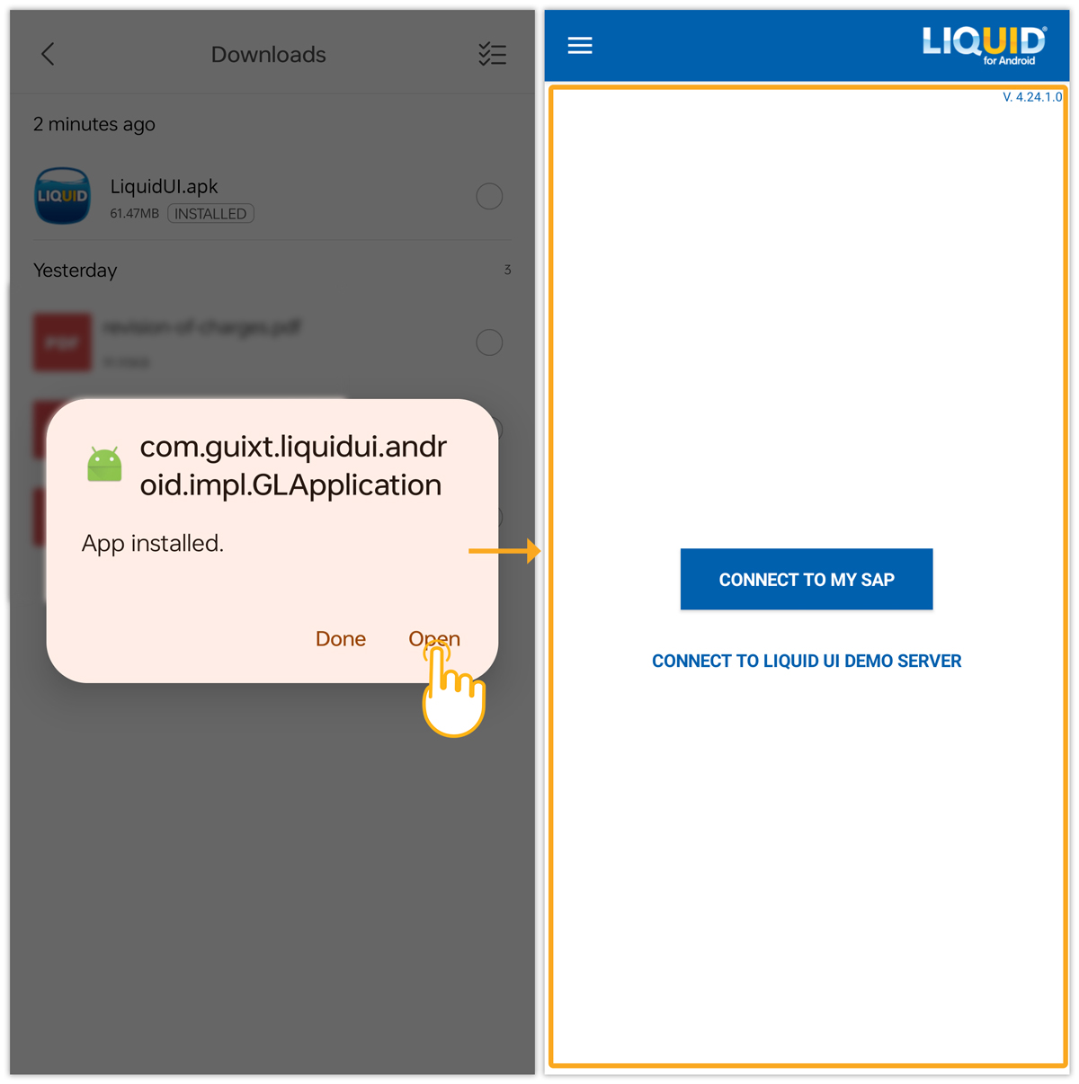 - Then, a popup will appear stating App installed. Now, click Open to navigate to the Liquid UI for Android.