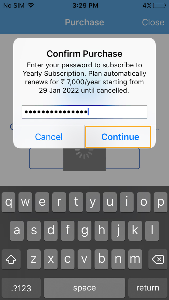 - The app directly provides, the Purchase Through In-App option under the main menu.