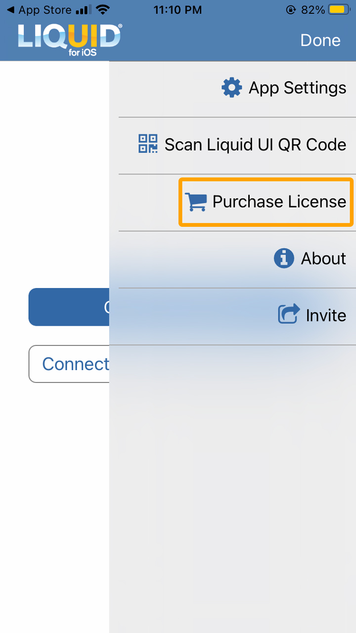 - Open Liquid UI for SAP App and navigate to the Main menu --> Purchase License.