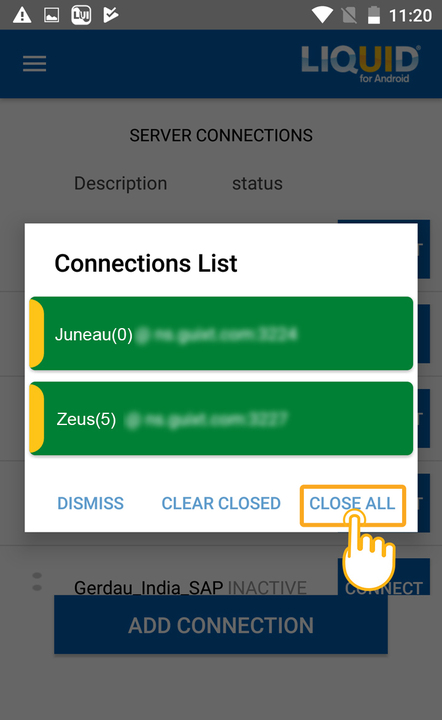Click the CLOSE ALL option to exit out and close all the server connections.