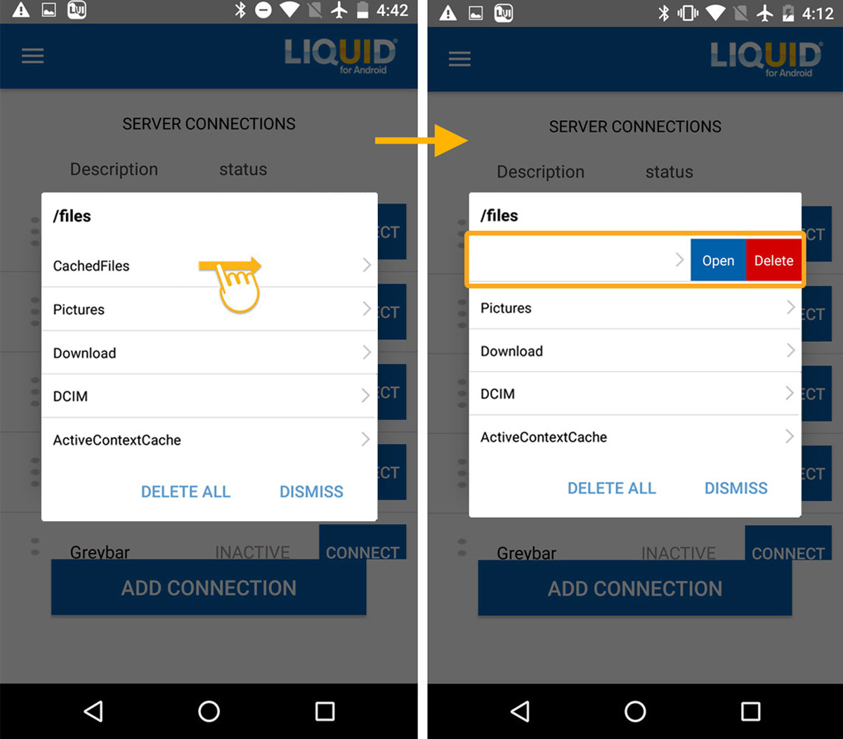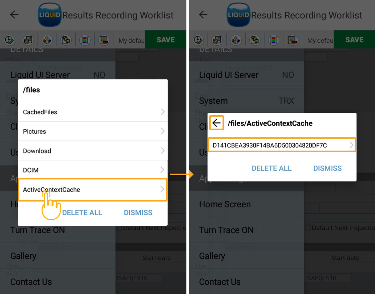 - The ActiveContextCache folder consists of all the cache files that get stored here as a result of the HTML content in our App. To view all the cache files, tap on the ActiveContextCache folder. Swipe left on it to either open or delete all the uploaded cache files, using the Open and Delete options.