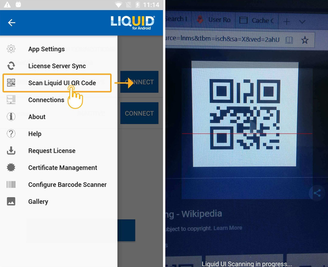 Scan Liquid UI QR Code setting enables users to scan all the QR codes generated by the Liquid UI platform. QR code is an effortless and straightforward way of installing a license or adding an SAP Connection to Liquid UI for Android App.