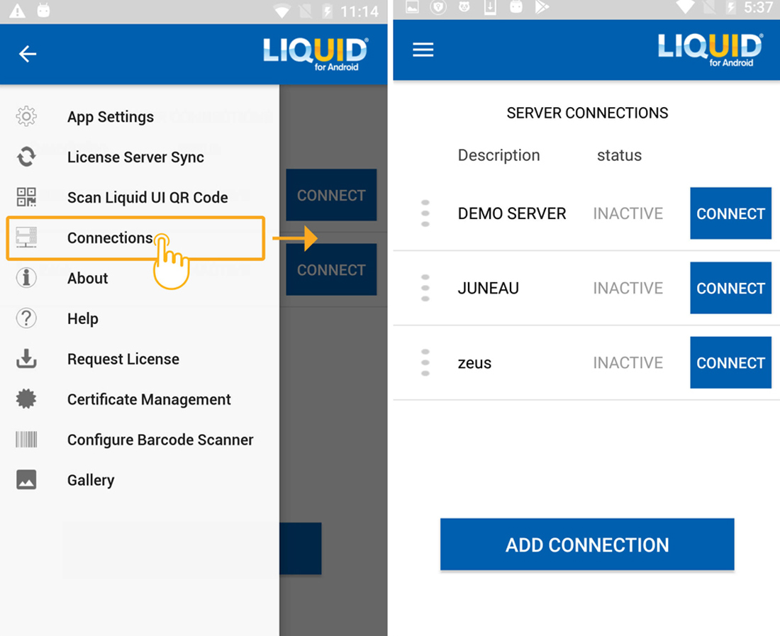 The Connections setting of the Main Menu contains the SERVER CONNECTIONS list. To know more about Server Connections, click here.
