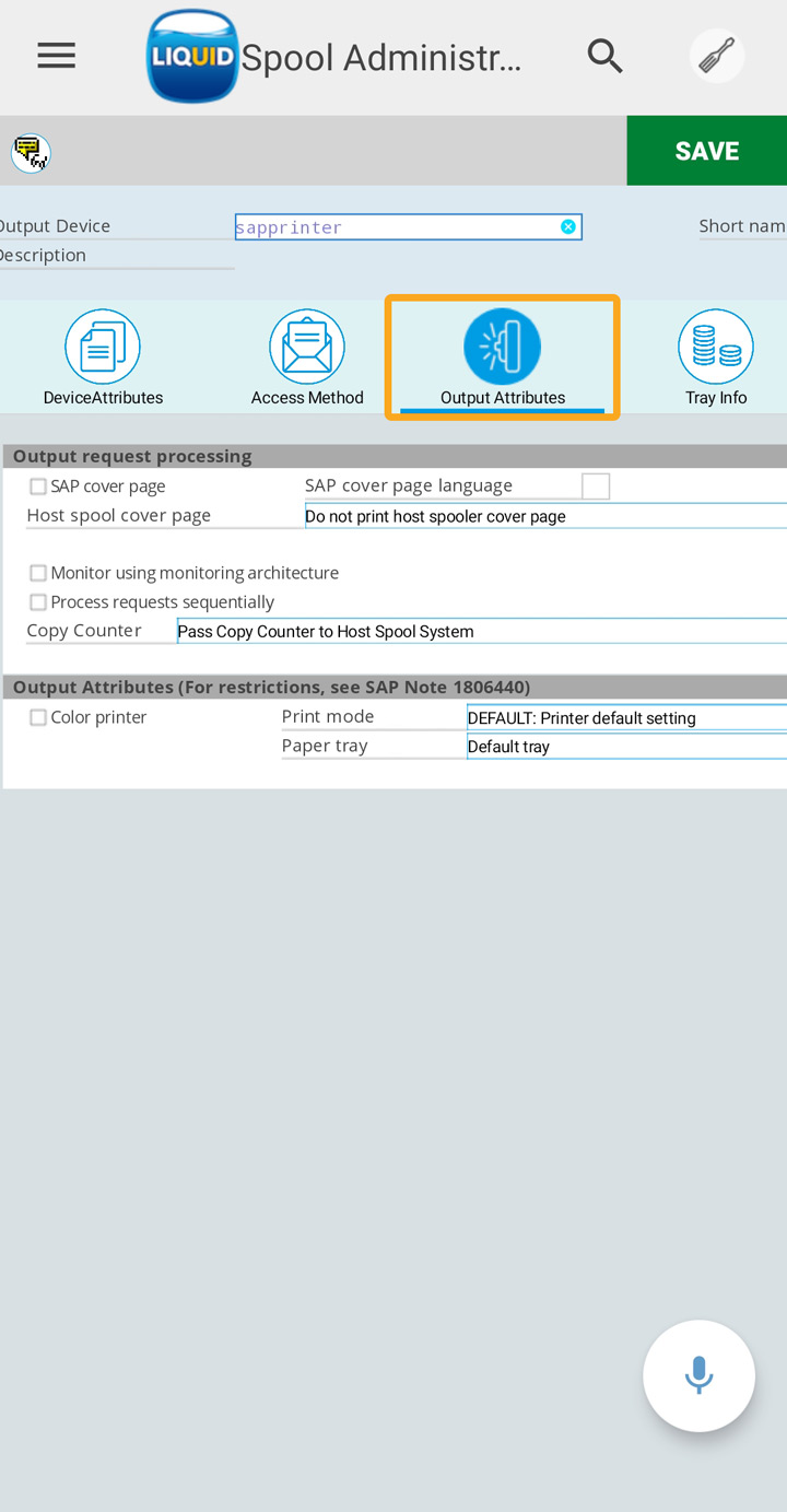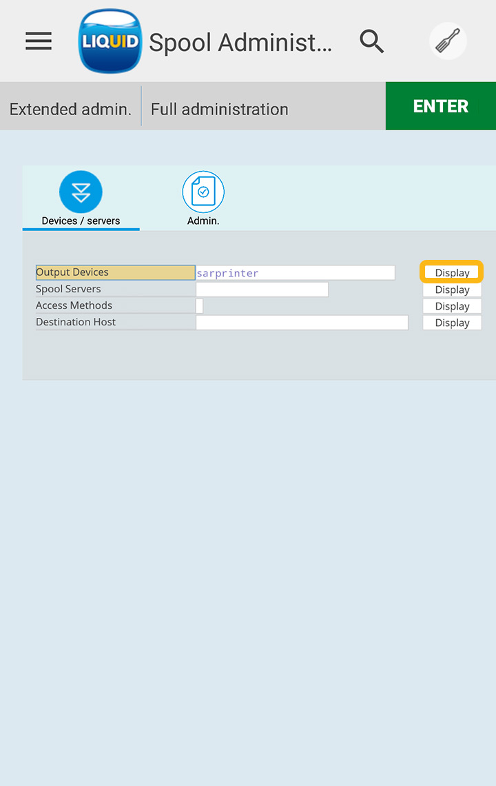 - Goto the SPAD transaction (Spool Administration screen). Click on the Devices/ servers tab, enter the name of the output device and tap on the display button.