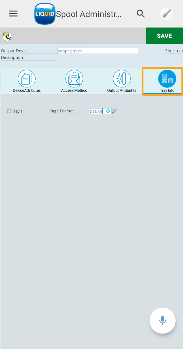 Print mode – DEFAULT: Printer default setting - Click on the Tray info tab to select the page format for printing.