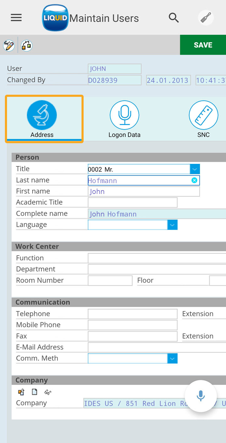 - Navigate to the SU01 transaction and enter the username in the User field. Click on the Change button.