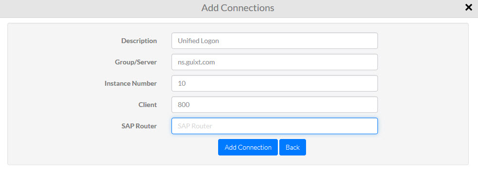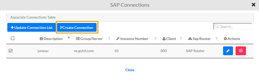 - Click the SAP Connections tab to create SAP server connections.
