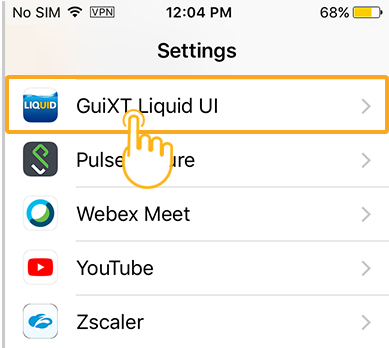 Click the Settings icon on your device. Then, click the GuiXT Liquid UI app as shown below.