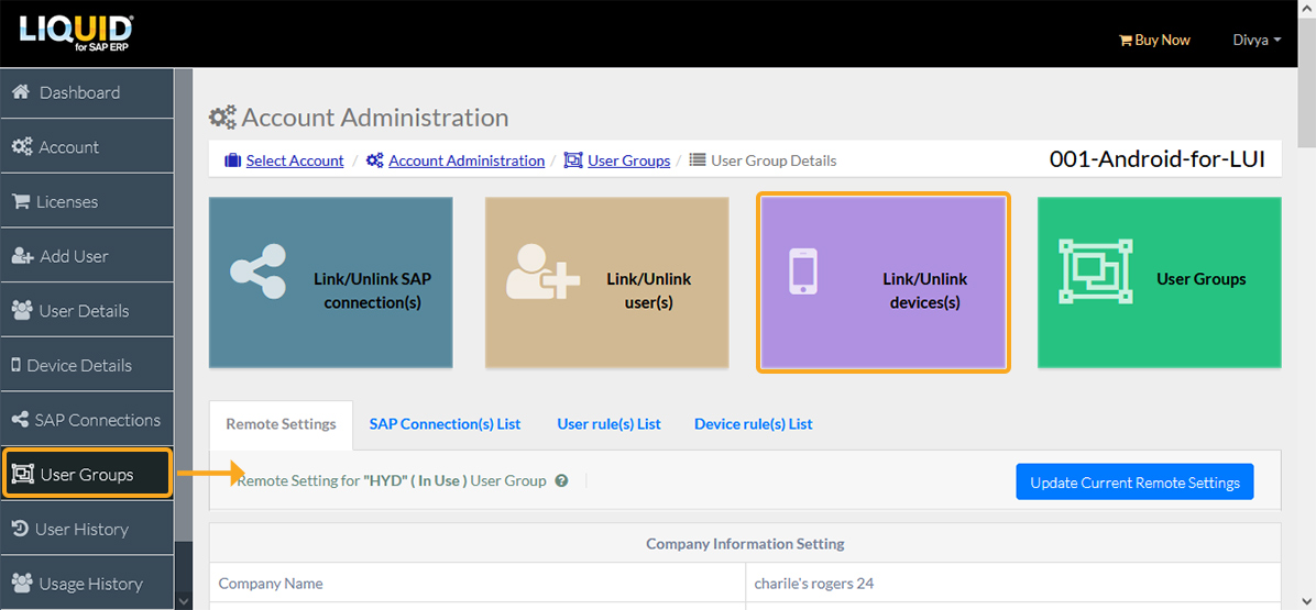 Note: Make sure to link the desired user and Android device to your User Group in LAMP before synchronizing your Android license.