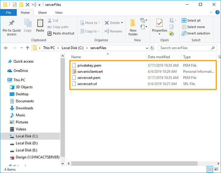 You will see the sarvanicert.p12 file generated in the C drive. Place all the keys and .p12 files in the specified file to access them as shown below.