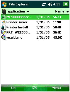 - On the mobile device, run ' PRT_WCE500_02_28_2006.cab'. This will unpack the CAB file and distribute the necessary components to the device.