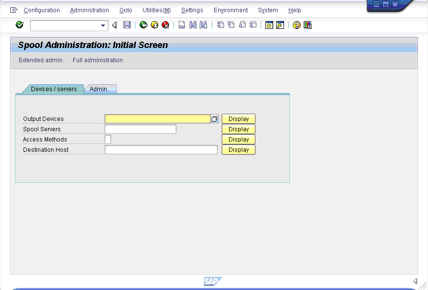 - The following screen will appear. Click Display button to the right of the Output Devices field.