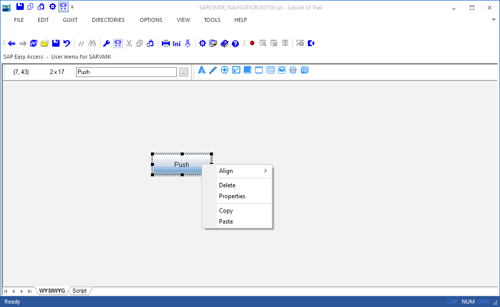 Once an element has been added to a screen, users can then right-click and select a variety of options from the context menu as shown below.