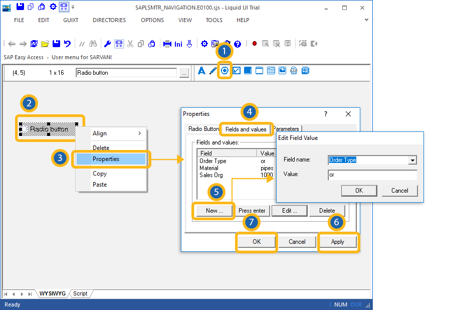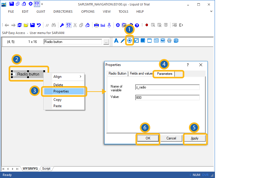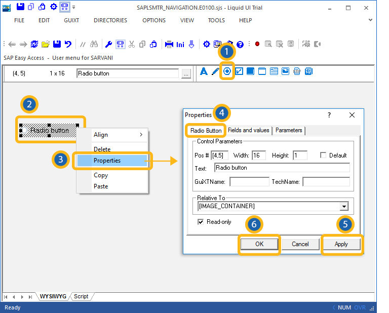 Liquid UI - Documentation - 5.02.04 Viewing SAP Radiobutton Properties