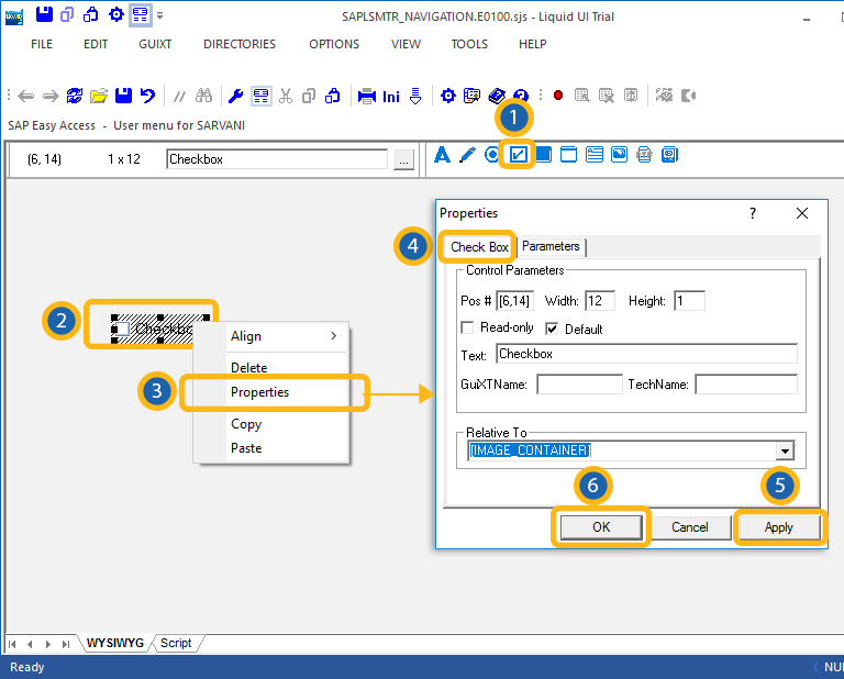 You can manipulate the properties for the checkbox element from this dialog box. The tabs are more fully explained below.