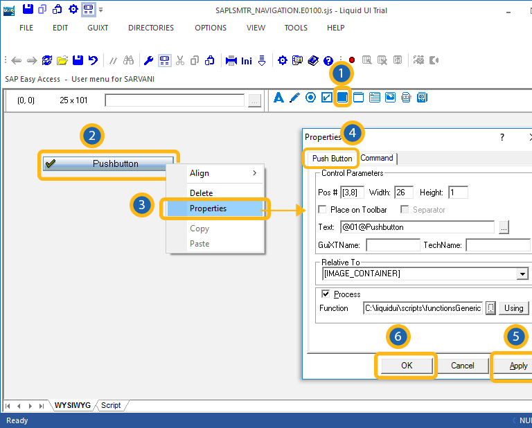 Liquid UI - Documentation - 5.02.06 Viewing SAP Pushbutton Properties