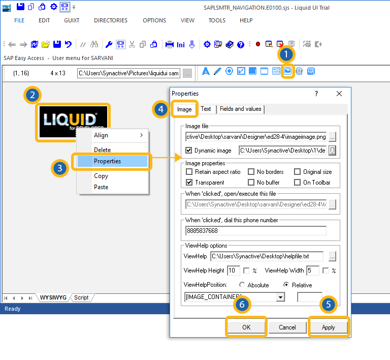 If the position of the image is absolute, enter the position parameters in the field below the 'Relative radiobutton. If the image is relative to another screen element, choose the appropriate screen element from the drop-down list below the 'Absolute' radiobutton.