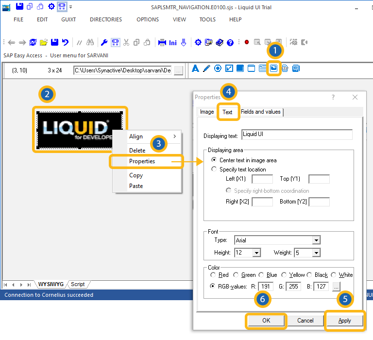 - Specify text location